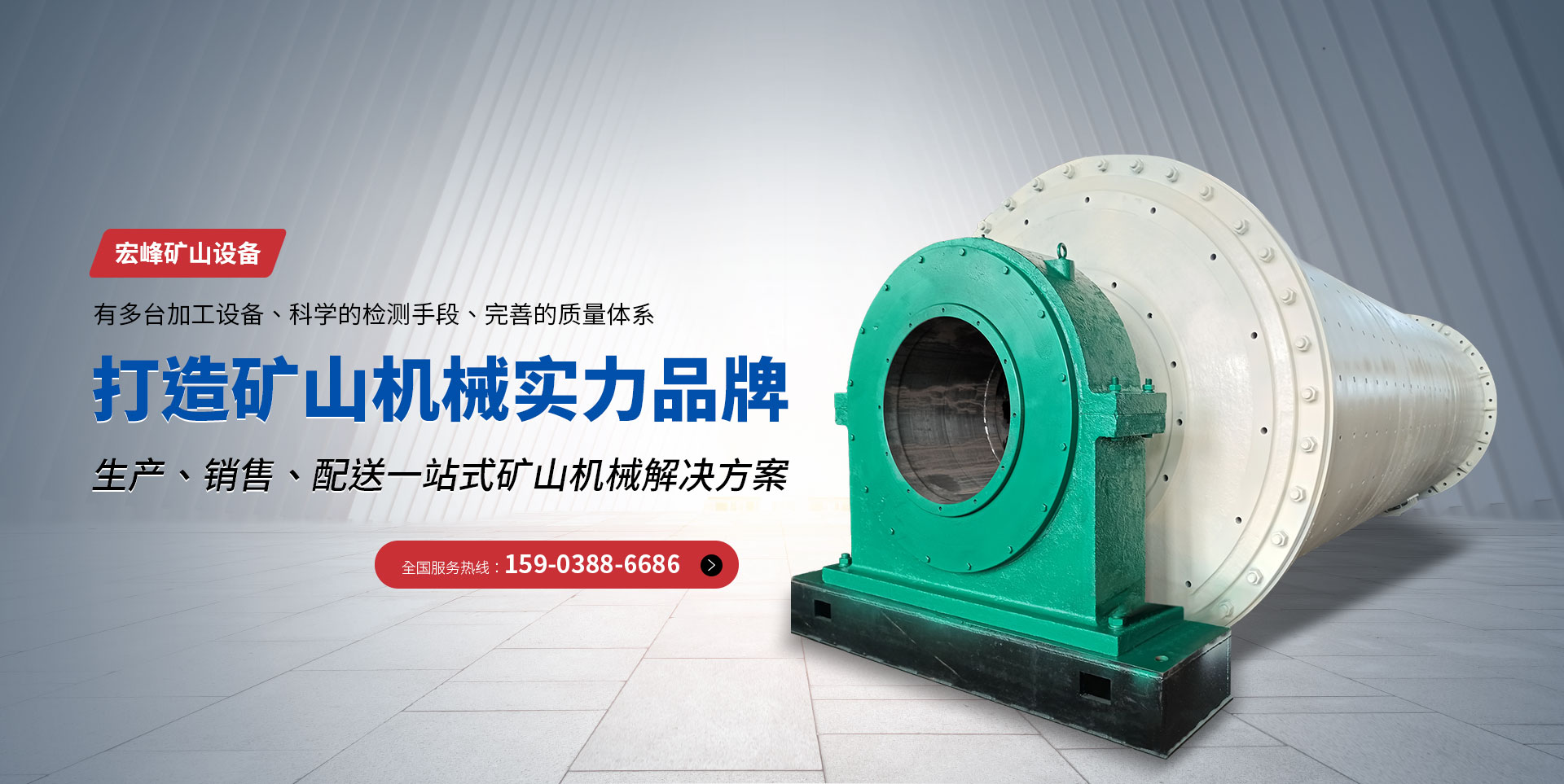 新鄉市宏峰礦山設備有限公司主要產品有:球磨機、破碎機、烘干機、回轉窯、砂石生產線等,生產出來的球磨機、烘干機、回轉窯,得到客戶的良好贊譽!  宏峰礦山設備有限公司,不斷學習、不斷自我完善。有多臺加工設備、科學的檢測手段、完善的質量體系。近幾年來,企業先后從各大專院校引進了人才,現以加工、組裝為主,生產選礦、建材、水泥設備。  本公司有標準化廠房兩座,各種大、中型金屬加工、鉚焊、裝配設備。其中具有中、高職稱的管理干部和工程人員8名,形成了技術力量。本公司遵循對每道工序負責,對每臺產品負責,對每位用戶負責的質量方針,竭誠為用戶服務。我們可以根據礦質情況和顧客的需要設計出適合您現狀的工藝,制定適合您的工藝流程。  公司主要生產有各種大、中型破碎設備、制砂設備、選礦設備、磨粉設備等系列產品。具體產品有顎式破碎機、錘式破碎機、反擊式破碎機、復合式破碎機、沖擊式破碎機(制砂機)、對輥破碎機及破碎生產線輔助設備皮帶輸送機、振動篩、給料機等破碎設備;制砂機、皮帶輸送機、振動篩、洗沙機等制砂生產線設備;球磨機、烘干機、浮選機、磁選機、分級機、濃縮機、螺旋溜槽、高頻篩、成品篩和回轉窯等選礦生產線設備;雷蒙磨粉機、高壓微粉磨、電磁振動給料機、提升機及各種雷蒙磨配件。  本廠愿與海內外朋友開展交流與合作,竭誠為顧客提供產品和服務,熱誠歡迎您光臨本廠指導和洽談業務。